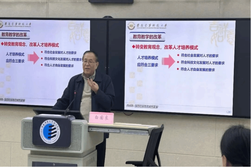 会上,西安建筑科技大学白国良教授以“做合格的大学老师——明确教育理念重视教学活动”为题,深刻阐述了现代大学教师的角色定位与教育使命,其报告既有理论深度,又紧密贴合教学实践,激发了与会教师的深刻思考。