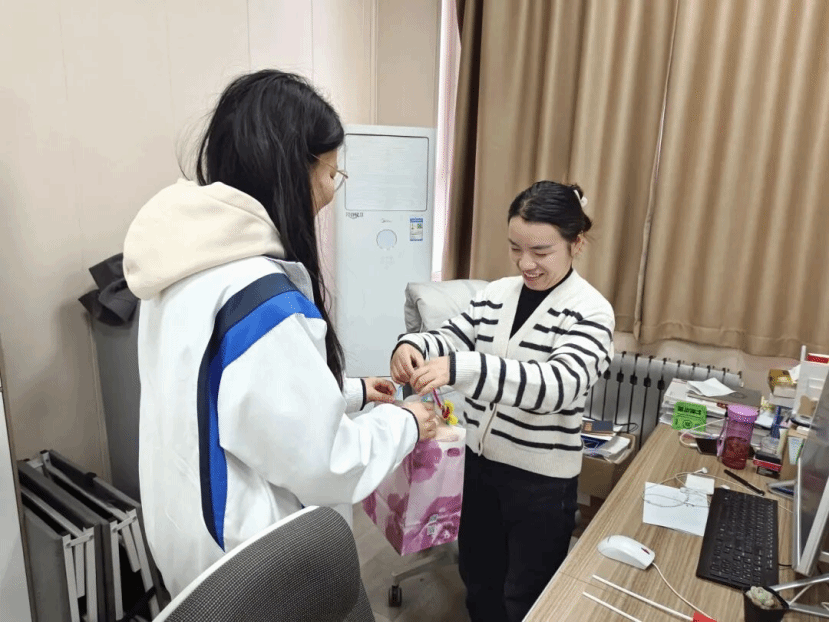 活动当日,课间的教师办公室化作一片温情洋溢的港湾。学生代表们满怀敬重与热忱,手捧着包装精美的玫瑰花茶,依次踏入各个办公室。每一束花茶旁,都系着承载满满心意的卡片,那一笔一划写下的温暖话语,字里行间皆饱含着莘莘学子对老师的深情厚谊与崇高敬意。当教师们接过这份饱含心意的礼物时,眼中惊喜与感动交织,平日里工作的疲惫与辛劳也在这一刻烟消云散。这一杯杯散发着馥郁芬芳的花茶,传递的不仅是宜人香气,更是同学们对师者如春风化雨般滋养的感恩与敬爱。