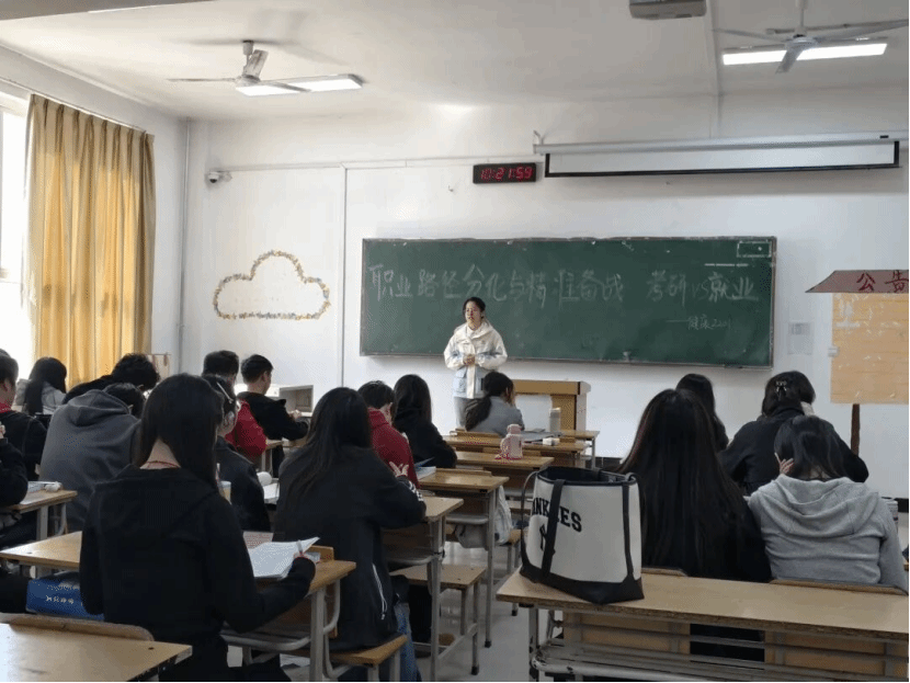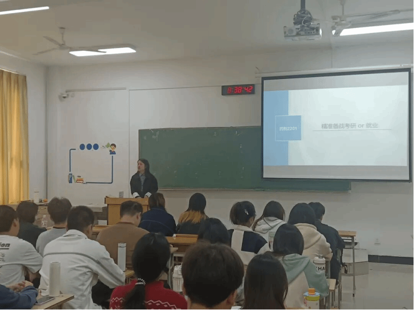 为了帮助22级学生提前明确自己的职业发展方向,班主任们组织了“职业路径分化与精准备战”的主题班会。在班会上,班主任们首先分享了学院近几届学生的考研和就业情况,为学生们提供了详实的数据和案例。接着,他们针对考研和就业两条路径,分别进行了深入的剖析和指导。对于考研的学生,班主任们介绍了基础的院校选择方法和备考策略;对于就业的学生,则分析了当前行业的就业形势和岗位需求。通过班会的引导,学生们对自己的职业发展方向有了更为清晰的认识和规划。