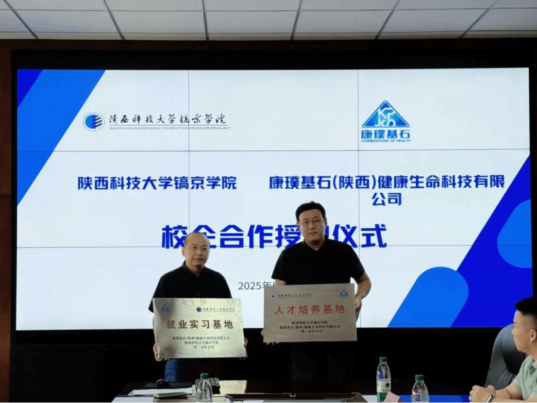 仪式在陕西科技大学镐京学院举行,校方代表医药工程学院执行院长、书记翟思程,副院长、副书记唐晓冰,药物制剂专业带头人王科博士,药物制剂教研室主任杨杜,企业方则由康璞基石健康生命科技有限公司副总经理高雷,人事负责人余娟等人代表参会。由学工秘书吕邵绮主持。