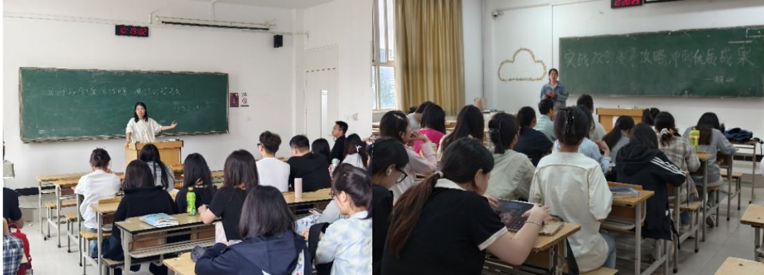 班会现场互动热烈,各班级通过政策问答、项目头脑风暴、学长经验分享等环节深化学习效果。黑板上“创新赋能未来”“以赛促学强本领”等主题标语鲜明醒目,学生认真记录要点,积极提问交流。班主任同步持续跟进学生组队与备赛进展。