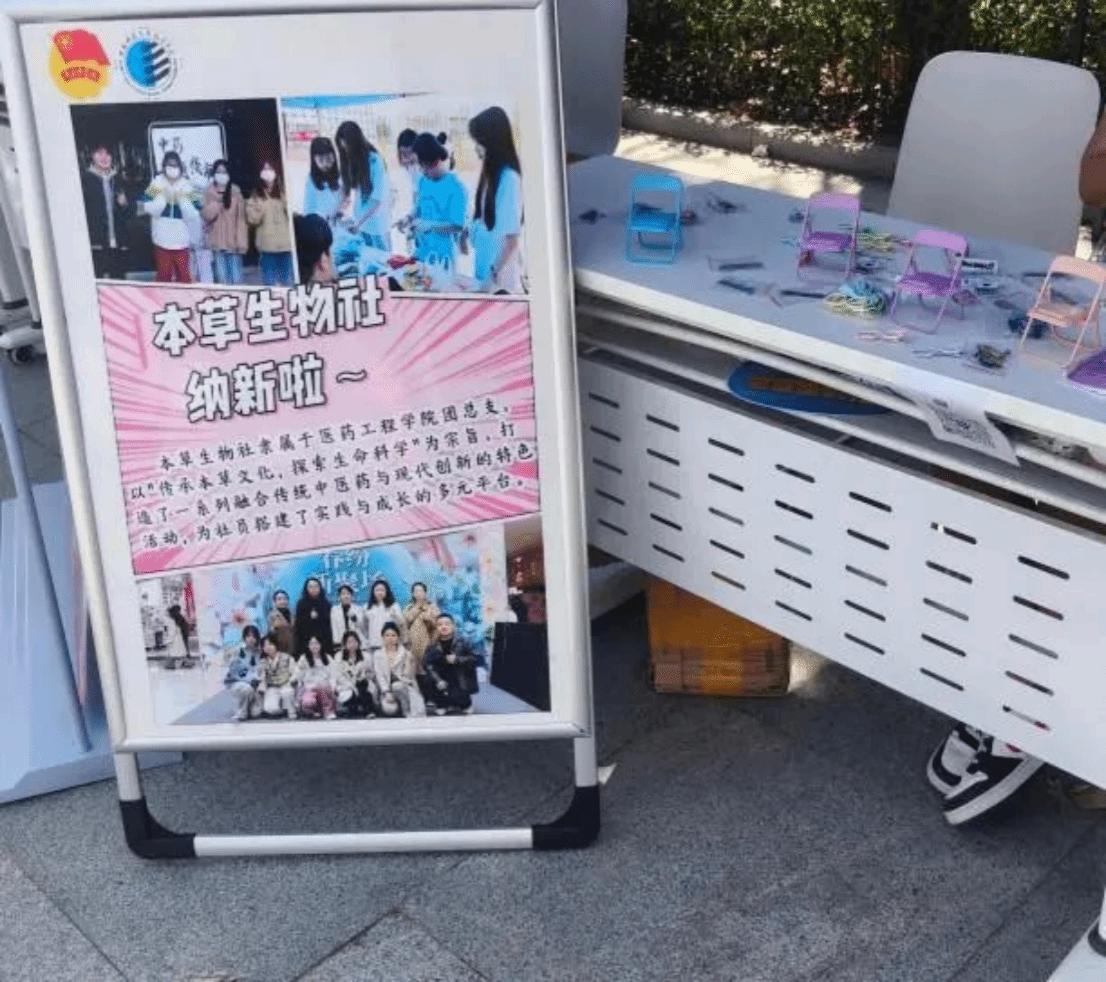 在宣传策略上,本草生物社充分发挥新媒体传播优势,通过微信公众号、校园墙、QQ群等多平台精准推送招新海报与宣传推文,生动呈现社团的特色活动与文化理念,提前营造了良好的招新氛围。线下方面,社团于07广场设置了主题鲜明、内容丰富的招新展位,通过陈列历年活动精彩照片、社员手工制作的中药标本、香囊、药皂等实物成果,直观展现社团的活力与学术内涵。