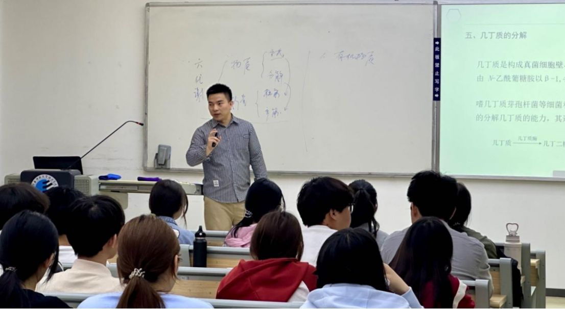 在教学过程中,王科博士充分展现了其深厚的学术积淀与教学创新力。他巧妙运用“代谢路径拼图”互动游戏,将抽象的生物化学过程可视化;通过对比细菌、真菌的代谢差异,启发学生思考微生物资源开发的策略;同时融入学科前沿进展,如CRISPR技术对代谢通路的精准编辑,激发了学生的科研兴趣与探索热情。