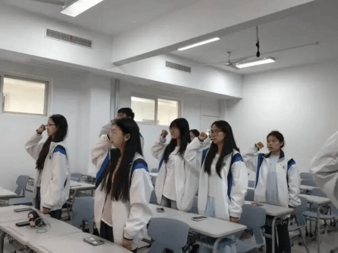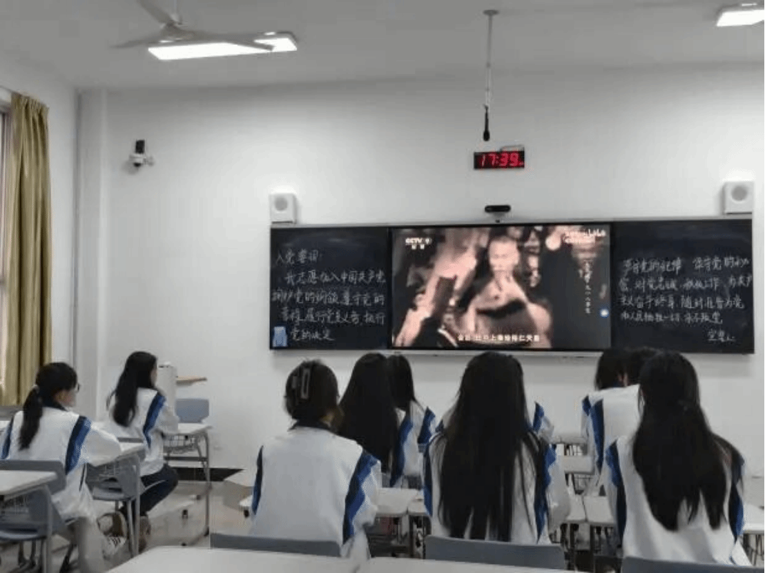 观影结束后,现场气氛凝重而肃穆,党员们沉浸在历史的悲壮与震撼之中。紧接着,全体党员举起右拳,神情肃穆,目光坚定,声音洪亮而铿锵有力地宣誓:“我志愿加入中国共产党,拥护党的纲领,遵守党的章程……”每一个字都饱含着对党的忠诚和对革命先烈的敬仰,誓言在会场中久久回荡。这不仅是对革命先烈的深切缅怀,更是对初心使命的再次叩问,对责任担当的郑重承诺。