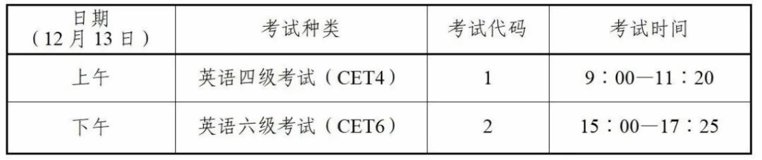 11月22至23日,22日开考英语口语四级,23日开考英语口语六级。